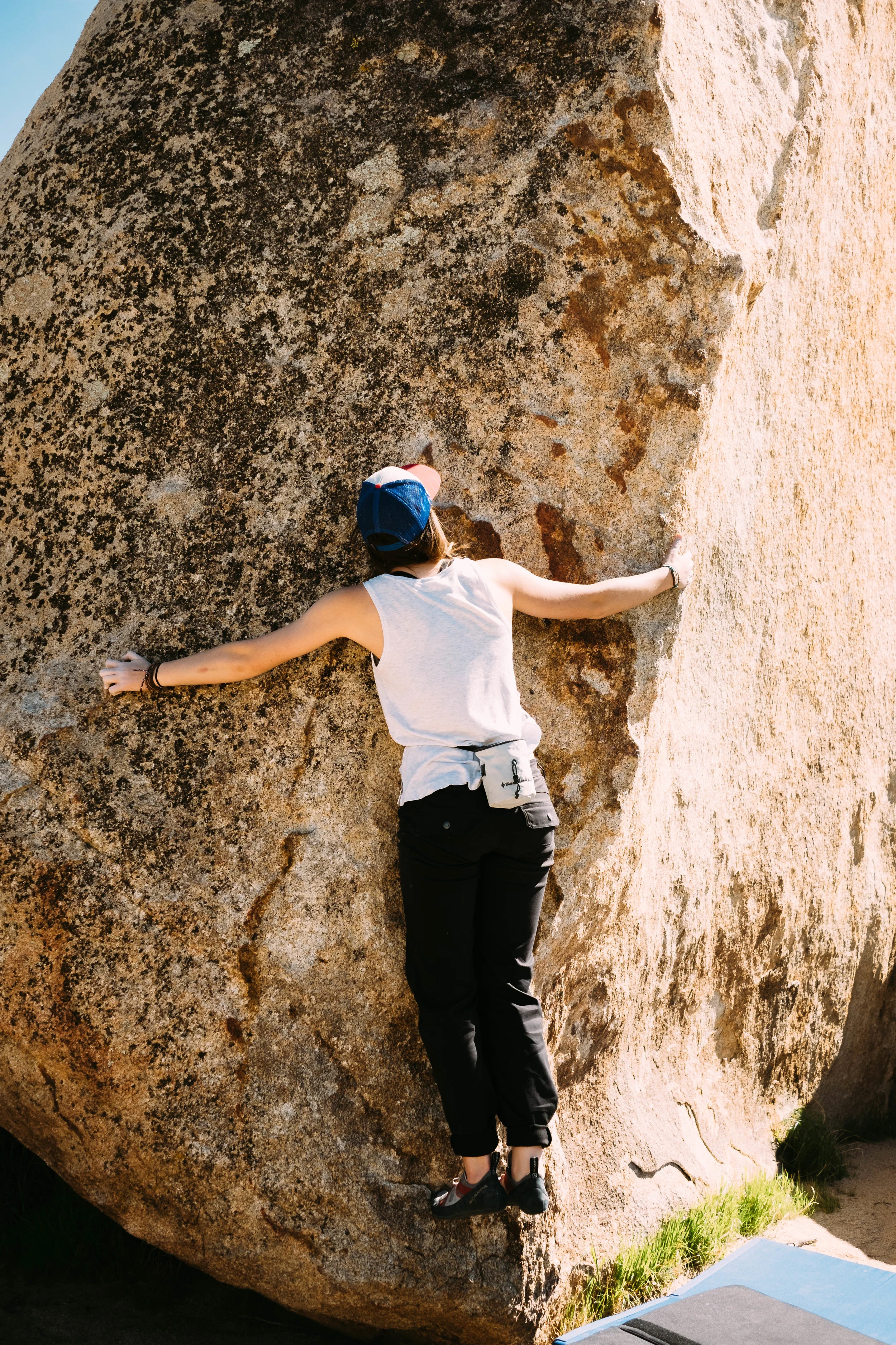 I almost didn’t buy a hat last week. As my boyfriend and I drove into Joshua Tree, the California sun beat through the windows onto my fair skin and I thought, Crap. I forgot my hat. And as a redhead in the desert, sunscreen and hats are my saving grace. We pulled into a shop to grab some more climbing gear and low and behold, there was a hat. Green and dark blue, it read it read “Climb Clean” with some sort of climbing gear. I turned it over in my hands a few times. I put it on. Looked in the mirror. It’s perfect. But I can’t buy this hat, I thought. I’m about to go on my second outdoor climb ever, and I don’t even know what “climb clean” means.
